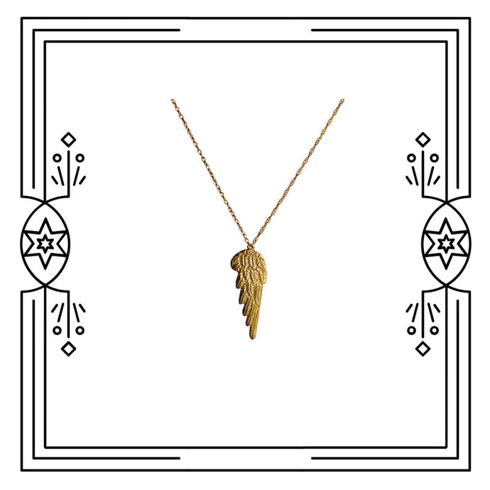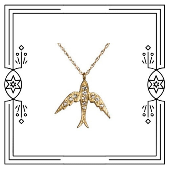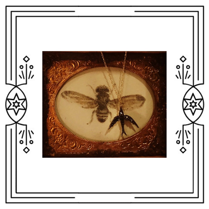 FANCY BIRD NECKLACE - ANTIQUE PLATED GOLD, BLACK DIAMONDS